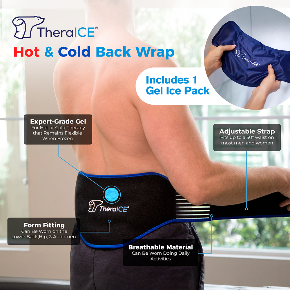 The TheraICE Back Wrap effortlessly transitions between ice and heat therapy, providing targeted relief for lower lumbar, sciatic, or herniated disc pain. This versatile wrap is a must-have for those seeking effective pain relief. Say Goodbye to Discomfort: Designed for both men and women, the TheraICE Hot & Cold Back Wrap delivers customizable therapy through dual heating pads and ice pack inserts. Its form-fitting design contours to your body, making it an essential tool for easing lower back pain and offering superior comfort.