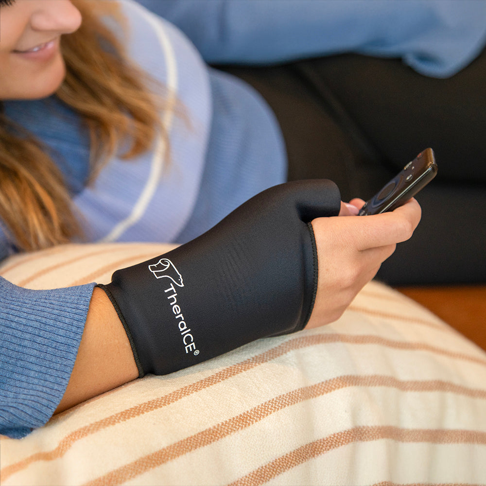 The TheraICE Wrist Ice Pack provides 360° hand relief for ease of movement and faster recovery. The slip-on design means no messy or uncomfortable ice packs, inserts, Velcro, or awkward straps. This easy-to-use hot & cold hand wrap, a natural remedy, is safe for daily use and ready for the freezer. Its soft gel design doesn't put undue pressure in specific areas, as with a hard ice pack insert. Made with cutting-edge material and expert-grade gel, the TheraICE Wrist Ice Pack Wrap is both comfortable and versatile. It can be worn safely on bare skin.